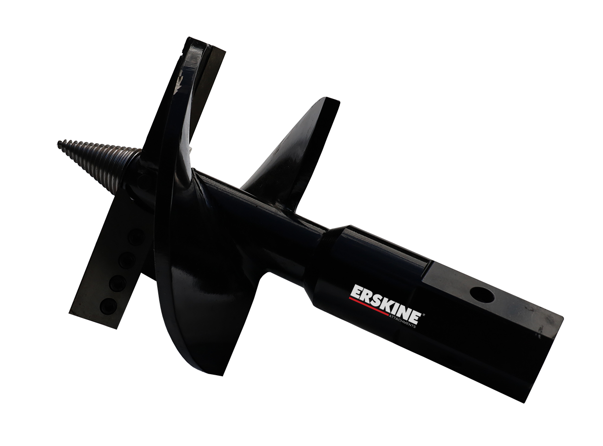 The Erskine Stump Planer is designed to efficiently remove stumps below ground level, helping prepare sites for landscaping, construction, or replanting. Using a skid steer or compact track loader with an earth auger drive, the stump planer delivers controlled, aggressive cutting with replaceable components built for long-term use.